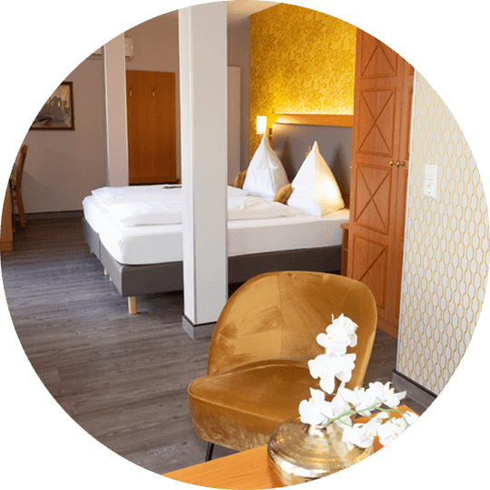 Living pleasure pure promises our 33 square meter Juniorsuite with its comfortable seating and several extras. Absolute advantage: The magnificent view into the green and over the River Tauber directly out of the double bed. The room is also suitable for allergy sufferers.