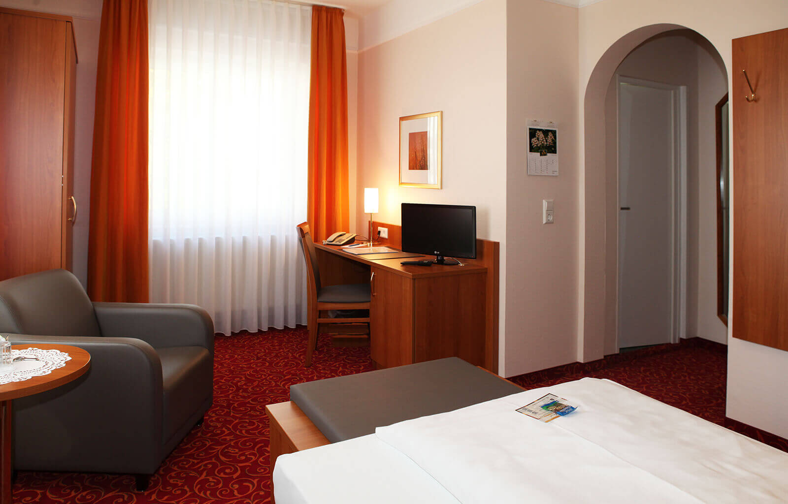 Our 14-20 square meter standard single rooms feature a cozy atmosphere. Many of them offer barrier-free access.